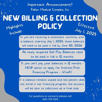 Fallon Medical Complex (FMC) is a community health care provider for a rural population in excess of 7,200 people spread over seven counties. We serve residents of Fallon, Carter, Wibaux, and Custer counties in Montana, and Slope, Golden Valley, and Bowman counties in North Dakota. Considered “frontier” by the Montana Department of Public Health and Human Services, this region boasts less than two residents per square mile.