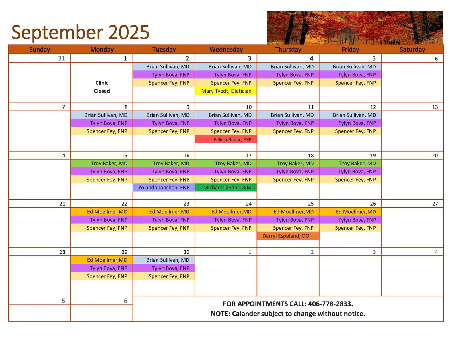 Provider Schedule